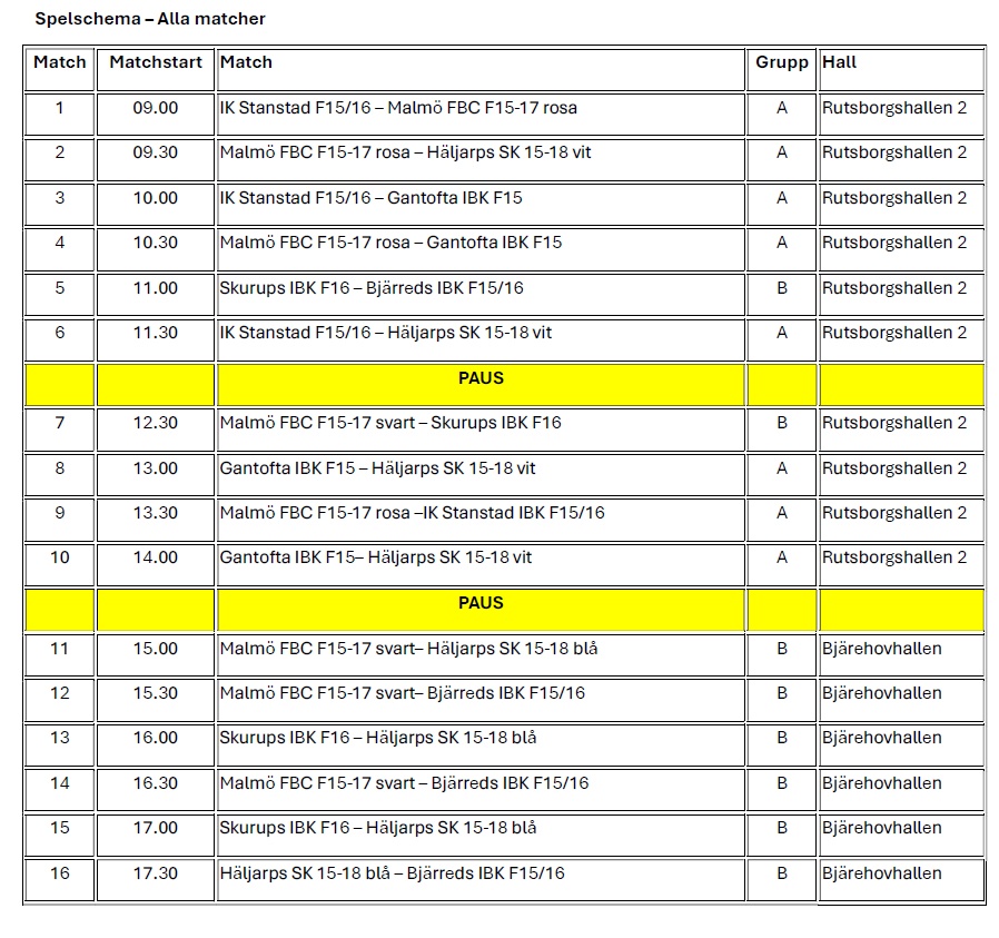Fredagen den 3, April spelar vi flickor Grön och Blå Nivå